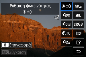 Μπορείτε να ρυθμίσετε τη φωτεινότητα της εικόνας έως ±1 στοπ, με βήμα 1/3 στοπ.