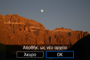 - Όταν χρησιμοποιείτε τις επιλογές [Διαμόρφ επεξεργασίας→JPEG] ή [Διαμόρφ επεξεργασίας→HEIF], επιλέξτε [