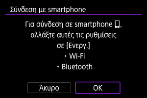 - Αυτή η οθόνη δεν εμφανίζεται, αν η ρύθμιση [Ρυθμίσεις Wi-Fi] και η ρύθμιση [Ρυθμίσεις Bluetooth] έχουν ήδη οριστεί σε [Ενεργ.].