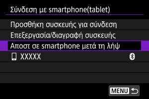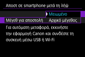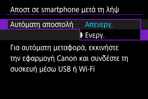 Οι λήψεις σας μπορούν να σταλούν σε smartphone αυτόματα. Πριν να ακολουθήσετε αυτά τα βήματα, βεβαιωθείτε ότι έχει διακοπεί η σύνδεση Wi-Fi μεταξύ μηχανής και smartphone.