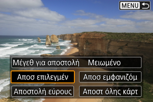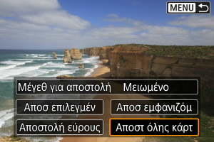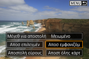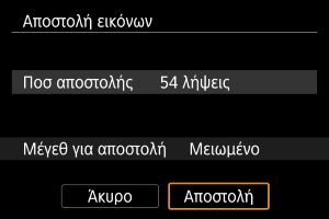 - Κατά την αποστολή πολλών εικόνων, μπορείτε επίσης να αλλάξετε το [Μέγεθ για αποστολή] ανάλογα με τις ανάγκες, στην οθόνη επιβεβαίωσης πριν από την αποστολή.