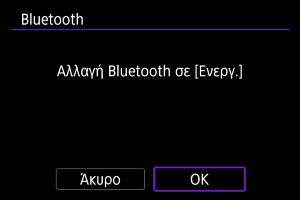 - Αυτή η οθόνη δεν εμφανίζεται αν η ρύθμιση του Bluetooth έχει ήδη οριστεί σε [Ενεργ.].