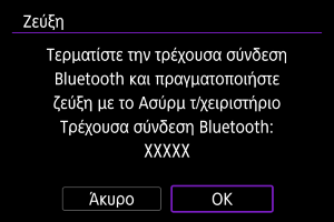 - Εμφανίζεται ένα μήνυμα, αν η μηχανή έχει συζευχθεί ήδη με μια άλλη συσκευή. Επιλέξτε [ΟΚ] για τερματισμό της τρέχουσας σύνδεσης με Bluetooth.