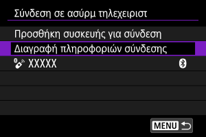 Μπορείτε να διαγράψετε τις πληροφορίες σύνδεσης. Αυτό ακυρώνει τη σύζευξη για τυχόν συνδεδεμένα ασύρματα τηλεχειριστήρια.