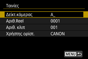- Ορίστε τις προεπιλογές για τα στοιχεία [Αριθ.Reel] και [Αριθ. κλιπ], όπως απαιτείται.