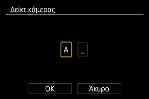 | (8) | Πεδίο οριζόμενο από τον χρήστη | Πέντε χαρακτήρες, από το A έως το Z και από το 0 έως το 9. Προεπιλογή: CANON. |