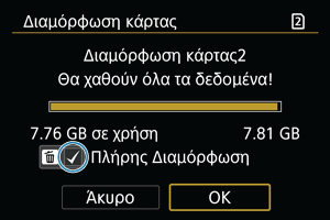 • Κατά τη διαμόρφωση χαμηλού επιπέδου, μπορείτε να ακυρώσετε τη διαμόρφωση επιλέγοντας [Άκυρο]. Ακόμη και σε αυτήν την περίπτωση, η κανονική διαδικασία διαμόρφωσης θα ολοκληρωθεί πλήρως και θα μπορείτε να χρησιμοποιήσετε την κάρτα ως συνήθως.