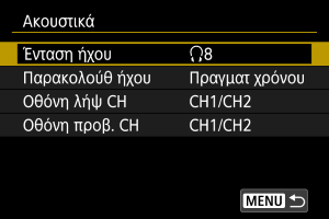 - Μπορείτε να ελέγξετε τον ήχο από το ενσωματωμένο μικρόφωνο ή από εξωτερικό μικρόφωνο σε ακουστικά όταν η ρύθμιση [