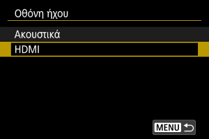 Μπορείτε να επιλέξετε τον συνδυασμό καναλιών για έξοδο από την υποδοχή εξόδου HDMI κατά τη λήψη ή την προβολή/αναπαραγωγή.