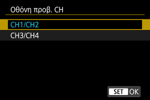 Επιλέξτε [Οθόνη λήψ CH] ή [Οθόνη προβ. CH].