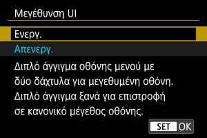 - Χρησιμοποιήστε τα χειριστήρια της μηχανής κατά τη διαμόρφωση των λειτουργιών μενού σε προβολή με μεγέθυνση. Οι λειτουργίες οθόνης αφής δεν υποστηρίζονται.