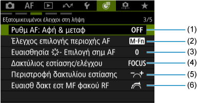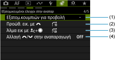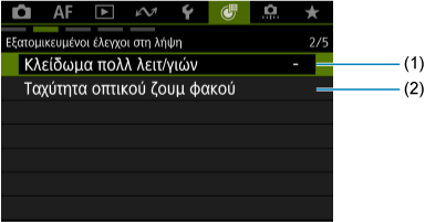 Καρτέλες μενού: Προσαρμογή ελέγχου