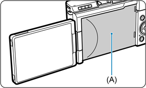 - Do not touch the screen storage compartment (A), because its temperature can increase by repeated continuous shooting for extended time or movie recording. This may cause burns.