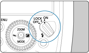 Las operaciones de botones y del dial de la unidad Speedlite pueden desactivarse ajustando el interruptor de alimentación en . Esto puede ayudar a evitar que se cambien accidentalmente los ajustes de la unidad Speedlite.