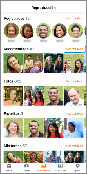 - Es posible que tarden un tiempo en mostrarse las pantallas de reproducción y de lista si hay muchas imágenes.