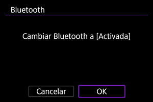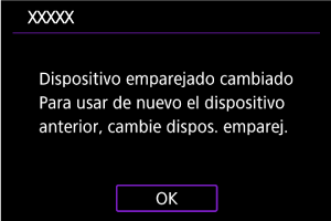 - Se mostrará un mensaje si la cámara ya está emparejada con otro dispositivo. Seleccione [OK] para finalizar la conexión Bluetooth actual.