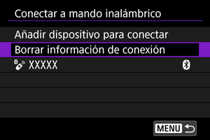 Puede borrar la información de la conexión. La información de emparejamiento para cualquier unidad BR-E1 conectada se eliminará.