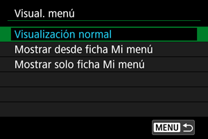 Puede seleccionar [Visual. menú] para ajustar la pantalla de menú que aparecerá primero cuando presione el botón .