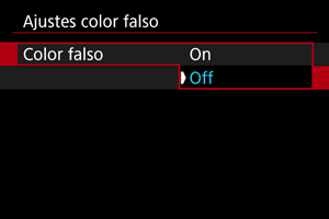Las funciones siguientes no están disponibles cuando la cámara se ha ajustado para usar colores falsos.