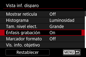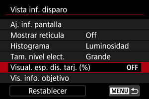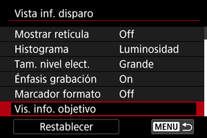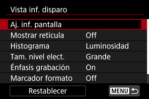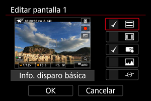 Puede personalizar los datos y las pantallas de información que se muestran en la cámara al disparar.