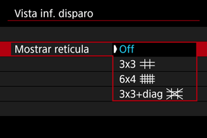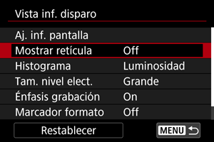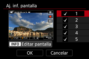 para seleccionar las pantallas de información que se muestran en la cámara.
