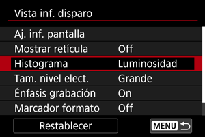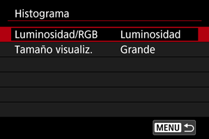 Puede seleccionar el contenido y el tamaño de visualización del histograma.