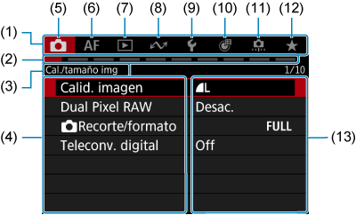 - (13) Ajustes de menú