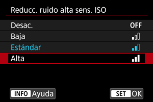 - El ajuste actual se indica en azul.
