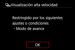 Los elementos de menú atenuados no se pueden ajustar. El elemento de menú aparece atenuado si hay otro ajuste de función que prevalezca sobre él.
