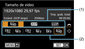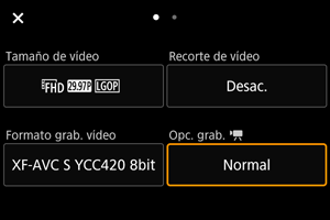 Control rápido en grabación de vídeo