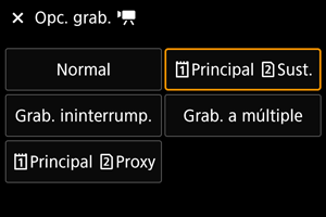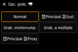 Pantalla de grabación de vídeo