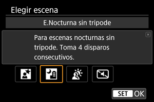 Para las tomas nocturnas realizadas con la mano sin trípode ni otro equipo similar.