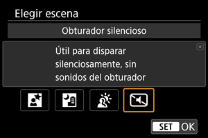 Cuando necesite silencio, puede disparar sin avisos sonoros o sonidos del disparo del obturador.