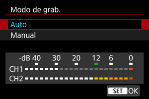 Disponible cuando [Modo de grab.] se ajusta en [Manual].