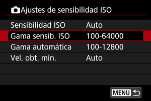 Seleccione [Gama sensib. ISO].