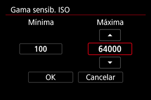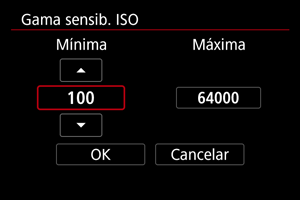 Puede ajustar la gama de ajuste manual de la sensibilidad ISO (límites mínimo y máximo).