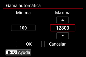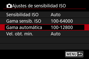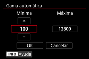 Gama de sensibilidad ISO utilizada con ISO Auto