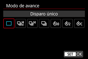 Puede seleccionar opciones del modo de avance desde el menú. Para ver información detallada, consulte Selección del modo de avance ().