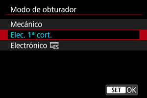 - Dependiendo del objetivo utilizado, es recomendable disparar con [Elec. 1ª cort.] o [Electrónico