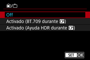 Cuando la cámara se ajusta en [HDR PQ], se muestran las imágenes convertidas a la forma en que se verían en un dispositivo de visualización HDR.