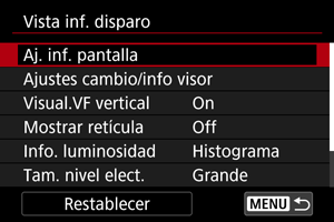 Seleccione [Ajustes cambio/info visor].