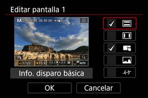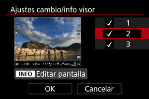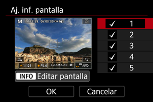 arriba o abajo para seleccionar las pantallas de información que se mostrarán en la cámara.