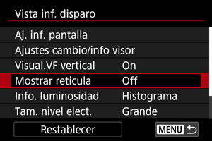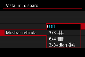 Se puede mostrar una retícula en la pantalla.