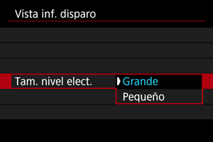 Puede seleccionar el tamaño de visualización del nivel electrónico.