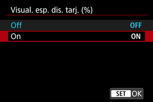 Visualización del espacio disponible en la tarjeta (%)
