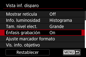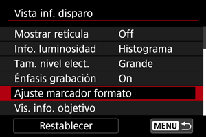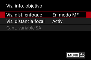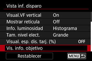 Seleccione [Vis. info. objetivo].