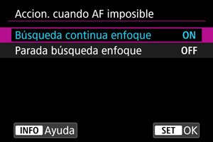 Puede especificar la operación del objetivo que se aplica cuando no es posible enfocar automáticamente un motivo.