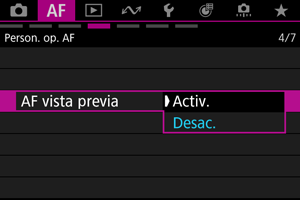 - El funcionamiento cuando no se activa equivale a ajustar [Velocidad AF] en [7].