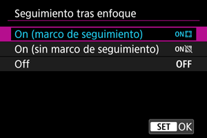 - Si se utiliza el anillo de enfoque con esta función activada, se deshabilita la selección táctil de motivos y el uso de botones para iniciar o detener el seguimiento.