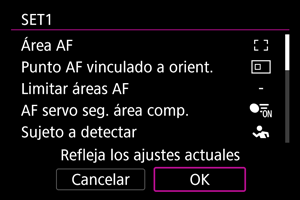 ]. Seleccione [OK] para registrar el ajuste. Para ver información detallada sobre las áreas AF, consulte Área AF.